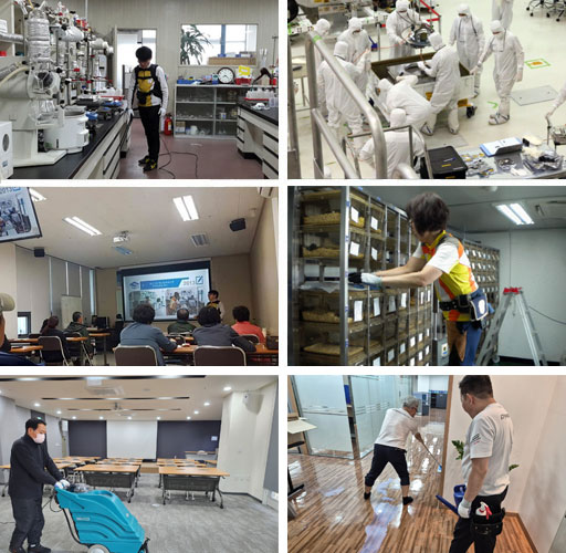 크린원은 일반 청소와 함께 특히 실험실, 연구실 시설이 있는 병원, 대학, 연구기관의 특수 청소 및 사무실이 있는 빌딩의 건물관리와 정기청소를 전문으로 하는 기업입니다.
